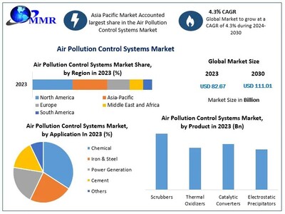 Maximize Market Research a leading Material & Chemical research firm has published a market intelligence report on the Global Air Pollution Control Systems Market. As per the report, the total market opportunity by 2030 is expected to be USD 111.01 Bn. The total market was valued at USD 82.67 Bn. in 2023 and it is expected to grow at a CAGR of 4.3 percent during the forecast period.