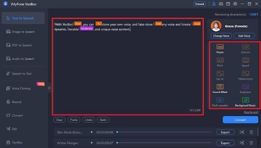 Once the process is completed, preview the voice and if everything is fine, hit the Export button and save that voice on your computer.